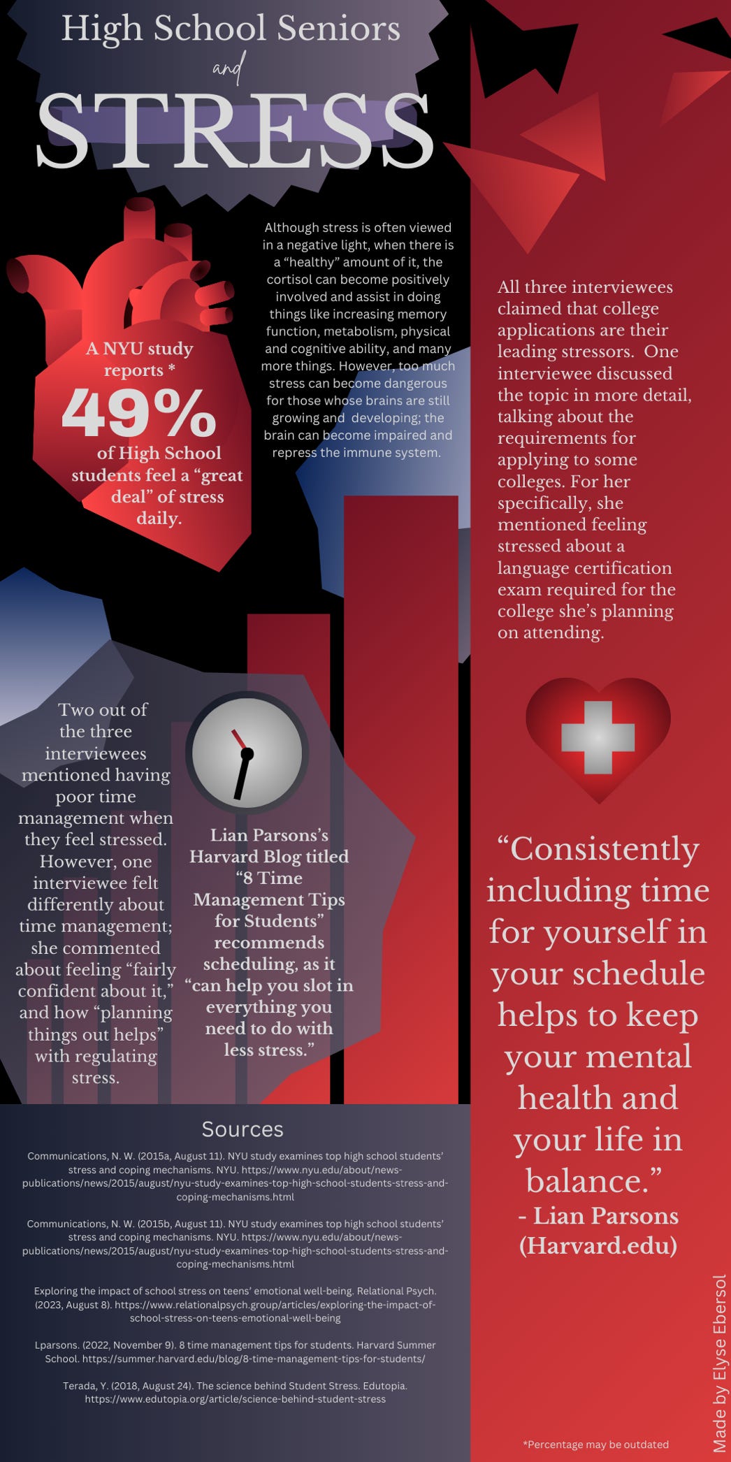 This graphic is for a psychology project documenting high school seniors' biological and neurological stresses and how they can reduce them. As a member of this group, I understand the pressure to succeed and the fear of failure. I used the structure of simple geometry as the opposing force pushing upward towards the darker, complex shapes headed down. It often feels like a battle of opposing forces. The challenge is real, and the science is there to prove it. This is art and science together, delivering strong communication.